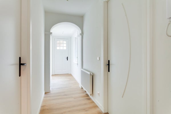 Het appartement van 59 m² bevindt zich op de eerste verdieping. Via de gezamenlijke entree en trappenhuis bereikt u het appartement. Entreehal met toiletruimte met fonteintje, bergruimte met CV-opstelling en wasmachineaansluiting, royale lichte woonkamer met sierschouw en luxe open keuken, en twee slaapkamers met ieder een eigen badkamer.