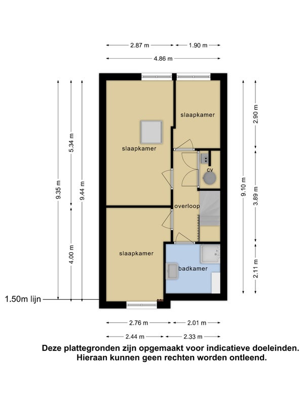 Via de trap bereikt u de tweede verdieping, waar een ruime overloop toegang biedt tot maar liefst drie goed bemeten slaapkamers. Deze kamers hebben allemaal natuurlijke lichtinval en zijn ideaal te benutten als slaapvertrek, thuiskantoor, logeer- of kinderkamer.