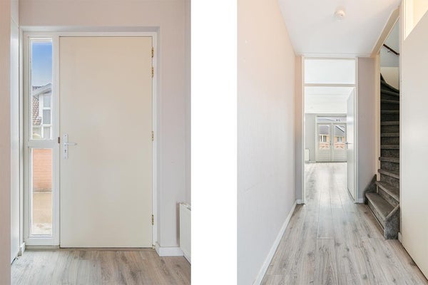 Via de entree met tochtportaal bereikt u een centrale hal waarin zich de meterkast en een net afgewerkt toilet met fontein bevinden. Vervolgens komt u in de ruime en lichte woonkamer, waar de grote raampartijen zorgen voor een fijne lichtinval en een aangename relatie met het groene uitzicht buiten.