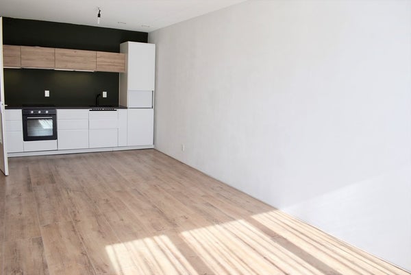 Entree woning met ruime hal met toegang tot separaat toilet, meterkast en techniek ruimte met wasmachine aansluiting. Ruime woonkamer met grote raampartij en toegang tot een heerlijk balkon. Open keuken voorzien van inbouwapparatuur als vaatwasser, koelkast, vriezer, oven, inductie kookplaat en afzuigkap. Een goede slaapkamer (ca. 3.8 x 3.11) ook met toegang tot het balkon. De badkamer is voorzien van een inloopdouche en wastafel.
