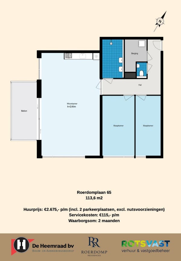 Huurprijs: €2.250,- p/m - 90m2 (incl. stoffering en parkeerplaats, excl. nutsvoorzieningen)