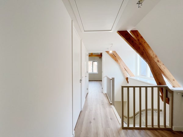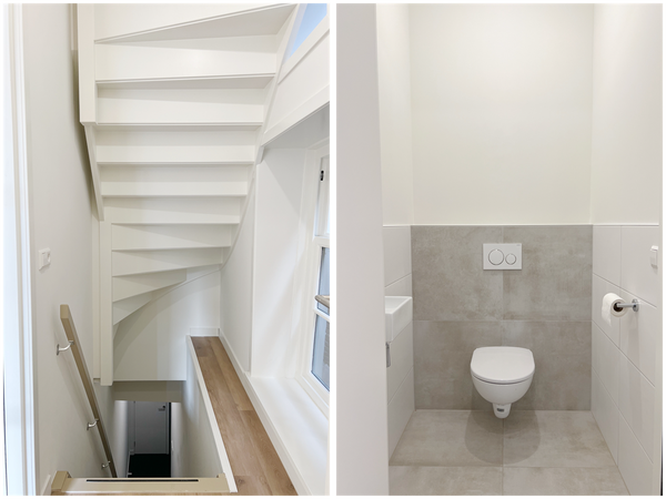 De entree van deze bovenwoning zit veilig verscholen boven de winkelstraten van Alkmaar. De zelfstandige bovenwoning heeft eigen ingang. Via een steegje bereik je je eigen voordeur en d.m.v. een trap bereik je de 1ste verdieping, waarna je meteen merkt: hier klopt alles. Een strakke, doorlopende vloer met warme vloerverwarming streelt je voeten zodra je binnenstapt. De gehele woning wordt trouwens mechanisch geventileerd, dus altijd frisse lucht zonder dat je continu een raampje op een kier hoeft te zetten.
