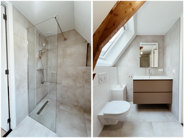 Boven vind je twee volwaardige slaapkamers met vloerverwarming. Beide zijn bijzonder prettig qua licht, oppervlakte en afwerking, dus of je nu thuis werkt, logés ontvangt of gewoon graag wat ruimte om je heen hebt. De badkamer is modern ingericht: perfect om ‘s ochtends wakker te worden onder de inloopdouche of ‘s avonds tot rust te komen in een oase van comfort bij het wastafelmeubel. Een aparte wasruimte maakt het plaatje helemaal compleet, geen rondslingerend wasrek meer in je woonkamer!