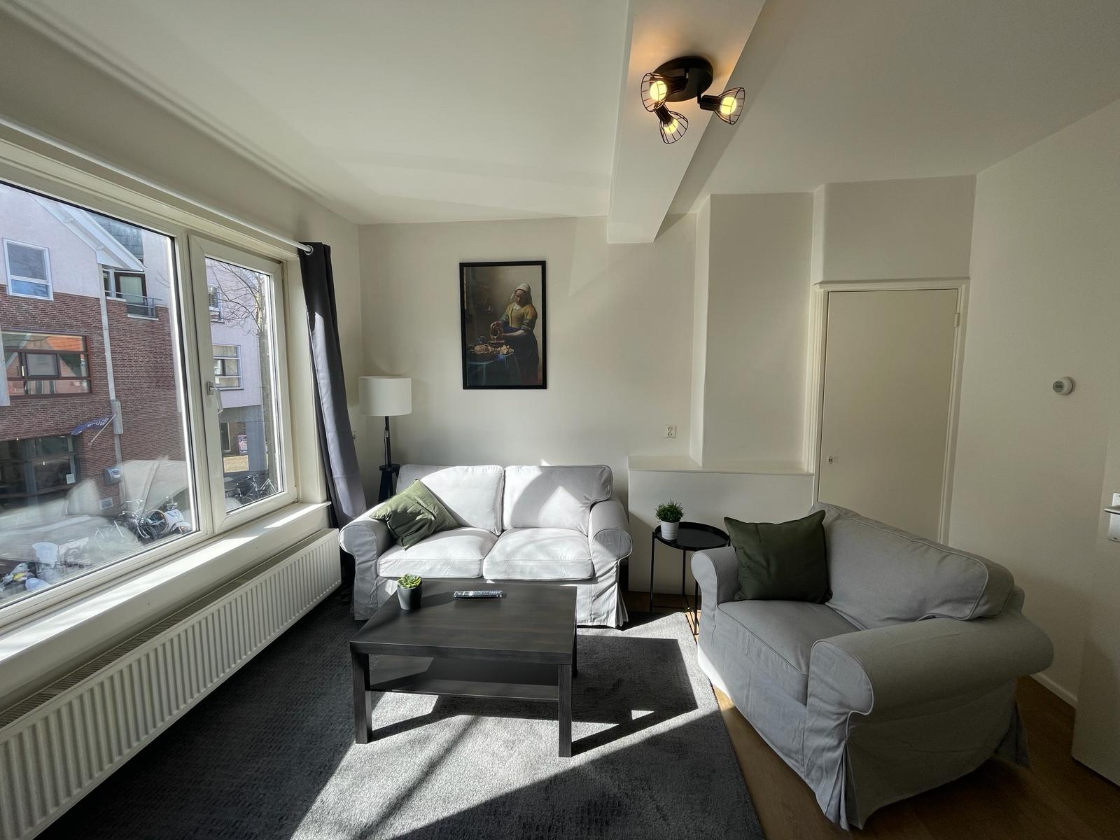 Dit leuke appartement aan de Laat biedt een prachtig uitzicht over de winkelstraat en met wat geluk kun je zelfs voor de deur parkeren. Bij binnenkomst via de centrale entree met intercom vind je op de eerste verdieping de ruime woonkamer, die dankzij de grote ramen heerlijk licht is. Aan de andere kant van het appartement ligt de slaapkamer, voorzien van toegang tot het balkon, wat voor extra rust zorgt doordat het aan de achterzijde ligt. De aparte keuken heeft veel bergruimte en inbouwapparatuur en opent ook naar het balkon. De badkamer is uitgerust met een douche en toilet. Het appartement meet 47 m² en is gemeubileerd. De huurprijs is exclusief gas, elektra en water, en er is een borg van € 2.200,-. Huisdieren zijn niet toegestaan.