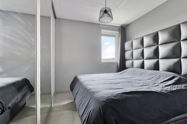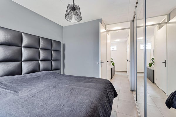 De slaapkamer bevindt zich aan de voorzijde en is voorzien van een ruime inbouwkast.