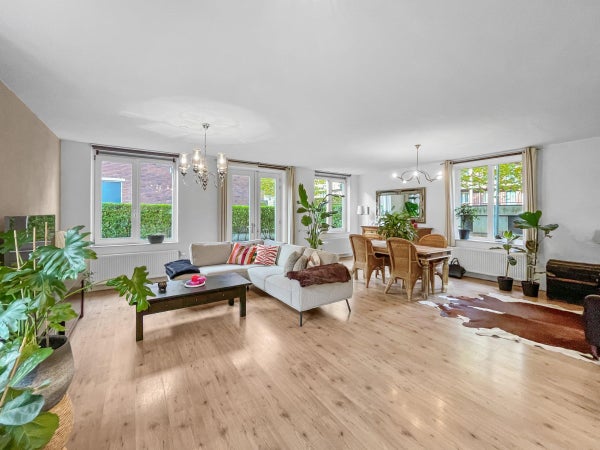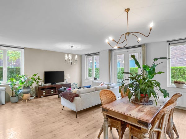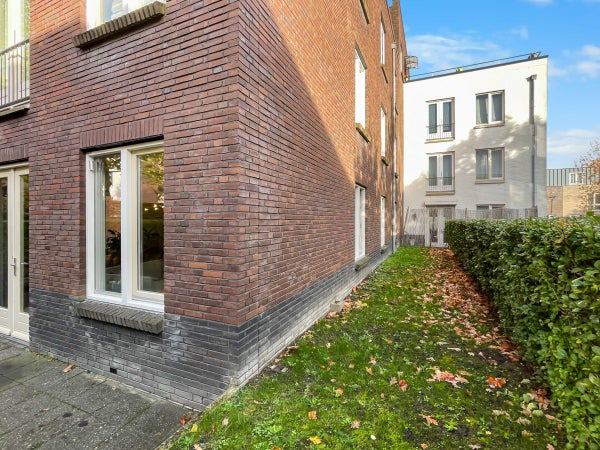 Bij binnenkomst treft u de hal met modern toilet. De lichte en ruime woonkamer met open keuken vormt het hart van de woning. Dankzij de grote raampartijen geniet u van veel natuurlijk licht. Vanuit de woonkamer heeft u toegang tot de royale wrap-around tuin, die het gevoel geeft van vrijstaand wonen – een unieke beleving in een appartement.