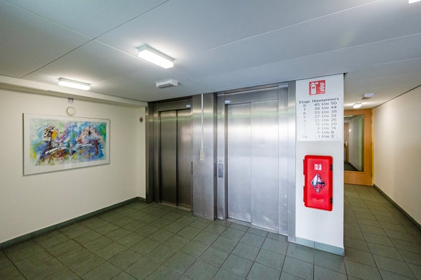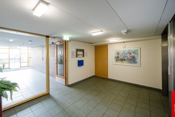 Royale, afgesloten centrale entree met 2 liften en trappenhuis naar de verdiepingen. Op de begane grond heeft u toegang tot de berging met afvalcontainers en de gemeenschappelijke fietsenstalling.