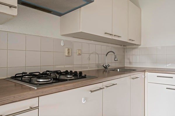 Via een trapopgang bereikt u het appartement op de eerste verdieping. De woonkamer is royaal en heeft door de vele raampartijen veel lichtinval. U heeft een vrij uitzicht en vanaf de ochtend al de zon in uw woonkamer. Hierdoor krijgt u niet alleen lichamelijk veel energie, maar bespaart u ook op uw energiekosten! Vanuit de woonkamer heeft u toegang tot het balkon, waar u de dag kunt beginnen met een kopje koffie. Deze is op het zuidoosten gelegen, dus qua zonligging ideaal! Vanuit de woonkamer heeft u toegang tot de open keuken. De keuken is voorzien van een gas kookplaat met afzuiger, vrijstaande koel/ vries combinatie en veel kastenruimte. Er is hier voldoende ruimte om een gezellige sta/ zit bar te plaatsen of een leuke servieskast. Naast de keuken is tevens de stookruimte, waar zich de cv ketel bevindt ( eigendom) en tevens extra bergruimte voor uw provisie is. Aan de achterzijde van het appartement bevinden zich twee slaapkamers. De master bedroom is heerlijk ruim en voorzien van een ingebouwde garderobekast. Vanuit de hal heeft u tevens toegang tot de meterkast, separaat toilet en de badkamer. De badkamer is geheel betegeld en voorzien van een net wastafelmeubel met lades en een hangend meubel, een ruime inloop douche en de wasmachine aansluiting. In het gehele appartement ligt een laminaat vloer.