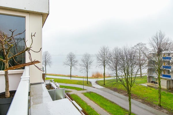 Entree, toilet, toegang tot de badkamer, slaapkamers en woonkamer. De ruime woonkamer is extra licht door de royale raampartijen en geeft toegang tot het balkon met een vrij uitzicht over het weerwater. De open keuken is uitgerust met een elektrische kookplaat, vaatwasser, koel-vries combinatie en combi-oven. Verder heeft dit appartement twee ruime slaapkamers en een ruime geheel betegelde badkamer voorzien van een ligbad, douche, wastafel met meubel en een wasmachine aansluiting. Het toilet is separaat.