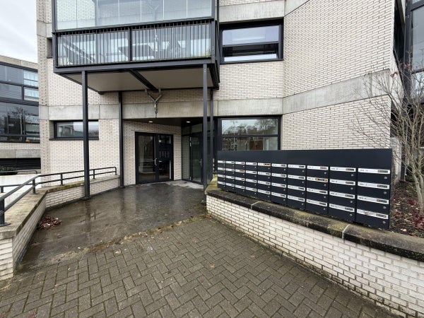 Centrale entree met brievenbussen, trapopgang en lift naar de verdiepingen maar ook naar de berging en parkeerplaats onder het gebouw.
