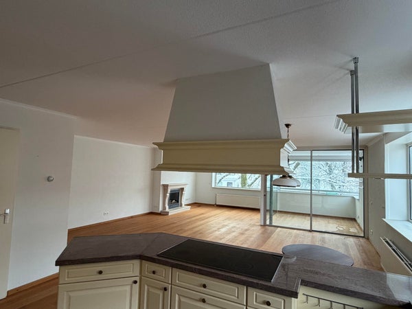 Entree van het appartement met een royale hal met veel bergruimte, toilet met fontein en bergkasten en toegang tot aparte berging en waskamer slaapkamer & logeerkamer. Royale woonkamer met veel lichtinval en prachtig uitzicht, mooie en gezellige gashaard en fraai uitzicht op de tuin en het monumentale voormalige jongensinternaat. Middels de schuifpui bereikt u de op het Zuidwesten gelegen loggia. Tussen de woonkamer en de hal vindt u de zeer ruime open keuken met diverse inbouwapparatuur & inductie kookplaat.
