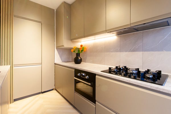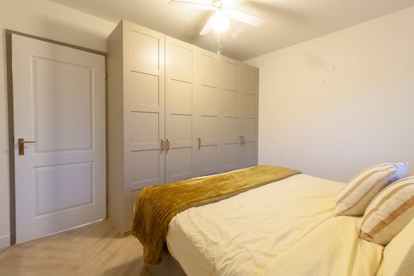 Beide slaapkamers bevinden zich aan de galerijzijde en zijn ingericht met een bed en ruime kasten met geïntegreerde verlichting.