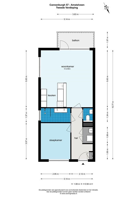 • Oppervlakte van de woning: 56 m²