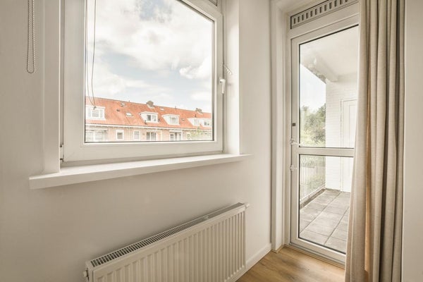 Zeer lichte woonkamer met een balkon aan de voor en achterzijde en een open keuken met eetkamer aan de straatzijde. De keuken is voorzien van een vaatwasser, ijskast en vriezer, inductiekookplaat, combi magnetron en separate oven. Zowel de woonkamer als de eetkamer zijn zeer licht en ruim. Op dezelfde etage bevinden zich 2 slaapkamers aan de achterzijde van het appartement.