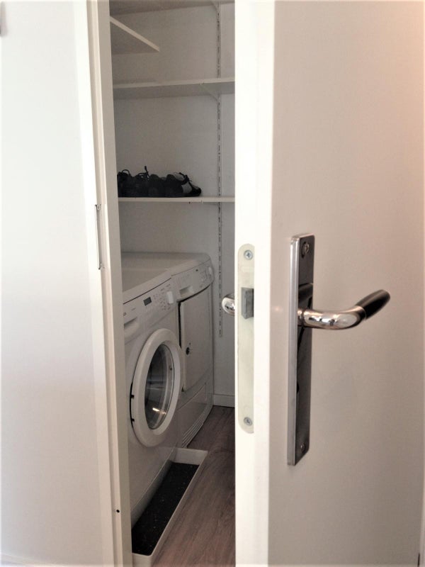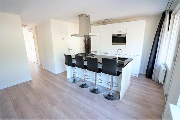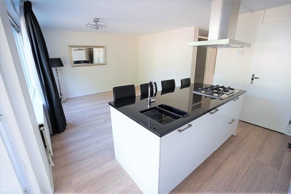 Het appartement heeft een woonkamer, een open keuken met kookeiland en alle benodigde inbouwapparatuur zoals combimagnetron, ijskast, vriezer en vaatwasser en een bergruimte waar zich wasmachine, droger en de CV ketel bevinden. Verder beschikt het appartement over 2 slaapkamers en een derde kamer die als slaapkamer of kantoorruimte te gebruiken is.