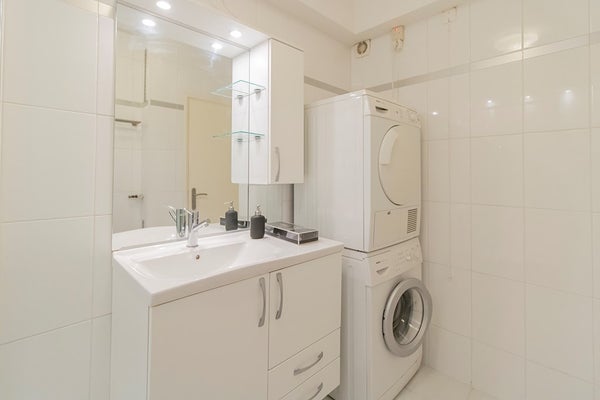 De keuken is aan de voorzijde gelegen en is voorzien van alle gemakken, zoals een koel-vriescombinatie, vaatwasser, combi-magnetron, 4-pits gaskookplaat en afzuigkap. De slaapkamers zijn aan de galerijzijde gelegen. De grote slaapkamer beschikt over een tweepersoonsbed en een kledingkast. De tweede slaapkamer kan in overleg naar wens worden ingericht. De badkamer beschikt over een douchecabine, wastafel, wasmachine en droger. Het toilet is apart gesitueerd in de hal.