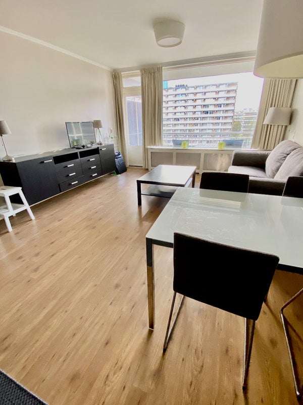 Volledig gerenoveerd en gemeubileerd appartement met 1 slaapkamer en balkon op het Zuidwesten, met vrij uitzicht. Luxe inbouwkeuken. Gunstig gelegen t. o. v. openbaar vervoer en uitvalsweg naar Amsterdam/ Schiphol en Den Haag. Winkelcentrum ligt zeer nabij.