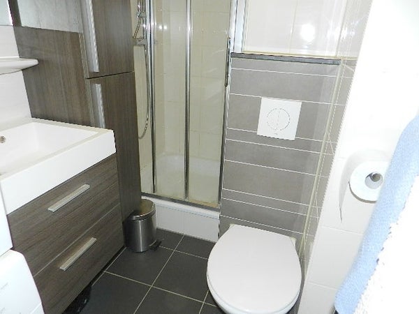 - Badkamer met toilet en douche (met wasmachine en droger);