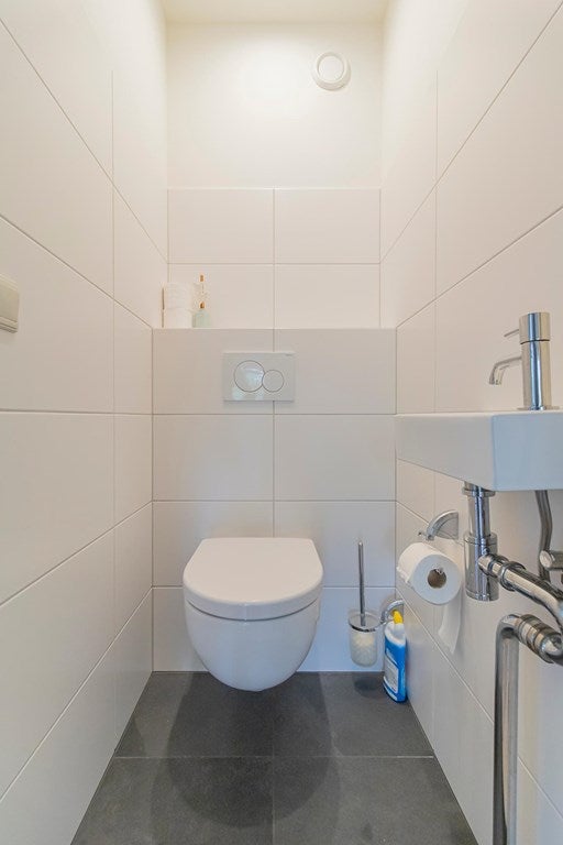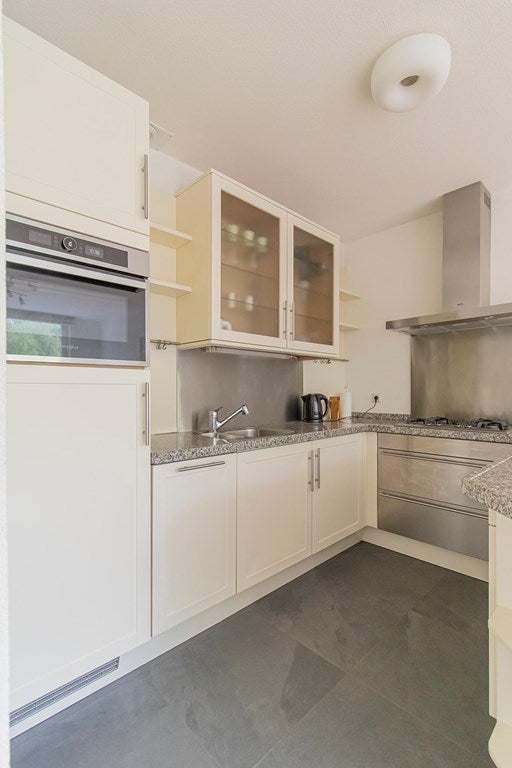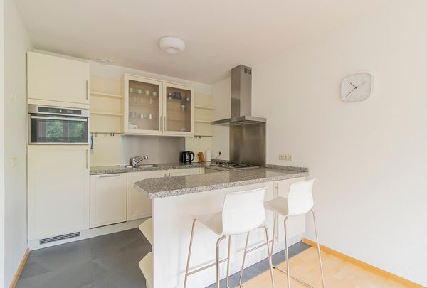 De keuken is voorzien van alle gemakken, zoals een koel-vriescombinatie, 4-pits gasstel, vaatwasser, oven en afzuigkap. De grote slaapkamer beschikt over een tweepersoonsbed en een kledingkast. De tweede slaapkamer is voorzien van een bureau, maar kan in overleg naar wens worden ingericht. De badkamer is modern en beschikt over een douche, wastafel en wastafelmeubel. Het toilet is apart gesitueerd in de hal. Tevens is er een inpandige berging en een extra ruime berging op de begane grond.