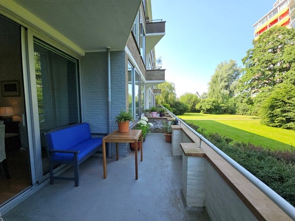 Aangenaam groen uitzicht over de tuin van het appartementencomplex