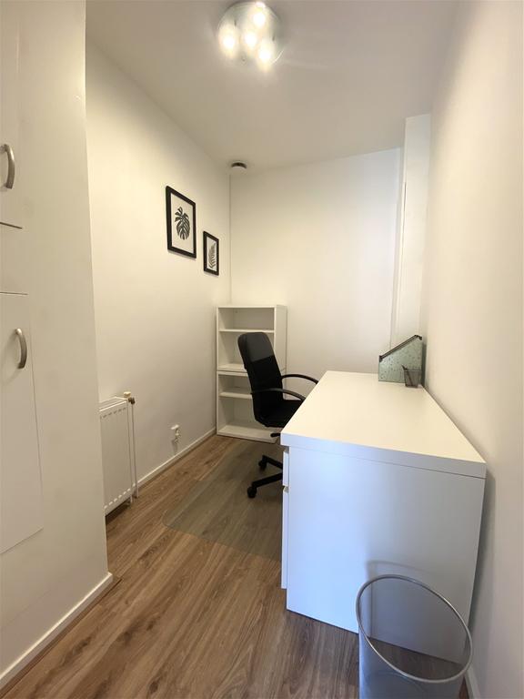 Je komt binnen in de gezamenlijke entree. Achter de eigen voordeur kom je binnen in een hal. Vanuit de hal kan je naar de tweede kamer wat als kantoor-/studeer ruimte gebruikt kan worden, het washok (inclusief wasmachine en droger) en de trap naar boven.