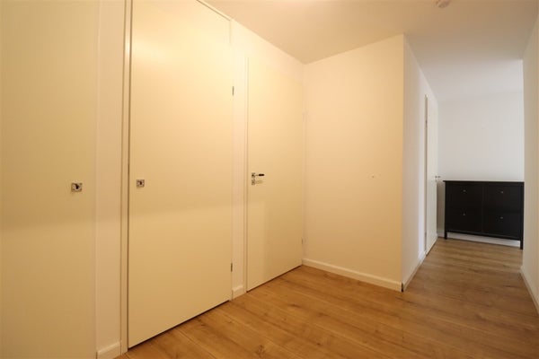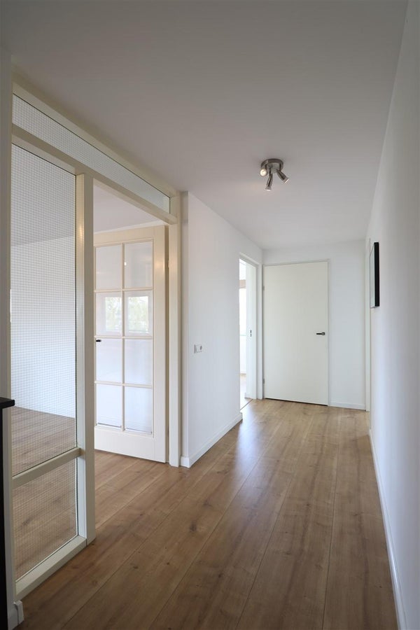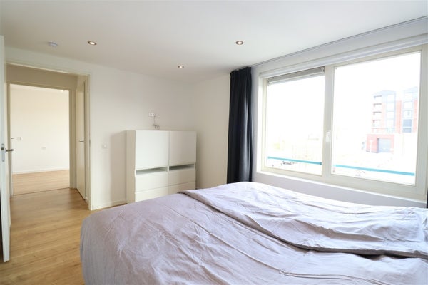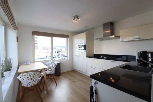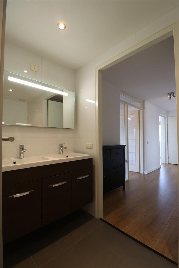 Via de L-vormige hal heeft u toegang tot de meeste vertrekken van het appartement. Bij binnenkomst in de royale hal de garderobe, 2 meterkasten en het separate toilet met fonteintje. Gevolgd door de moderne badkamer met wastafelmeubel met dubbele spoelbak, bad en douche. De enorme woonkamer is door de hoek positie van het appartement zonovergoten door de vele fraaie grote ramen. De semi open keuken is modern en beschikt over de nodige inbouwapparatuur zoals koel-/vriescombinatie, 5-pits gaskookplaat, rvs afzuigkap, combimagnetron en vaatwasser. Tevens vanuit de woonkamer de toegang tot het balkon op het zuidwesten. Aan het eind van de langgerekte L-vormige hal de vertakking naar 2 mooie ruime slaapkamers en een handige inpandige berging welke tevens is voorzien van de wasmachine en droger. De masterbedroom beschikt over een kingsize bed en wandmeubel. De tweede slaapkamer die kan fungeren als logeerkamer of thuiskantoor, beschikt over een grote garderobekast.