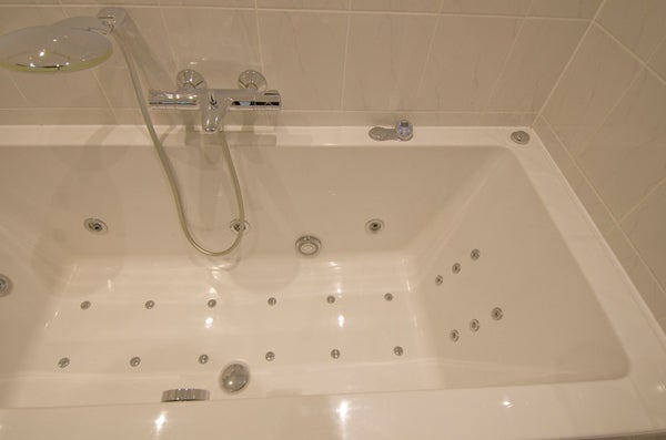 Luxe badkamer met jacuzzi-douche en TV-spiegel