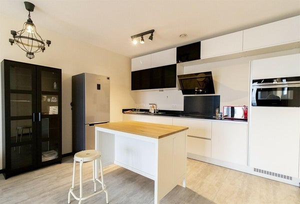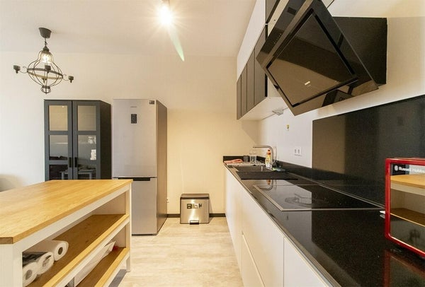 De open keuken is van alle gemakken voorzien, zoals in combi-oven, koelkast met vriesvak, design afzuigkap en 4-pits elektrische kookplaat. Tevens is er genoeg opbergruimte in de keukenkastjes. De grote slaapkamer is voorzien van een tweepersoonsbed en een ruime kledingkast. De tweede slaapkamer kan in overleg naar wens worden ingericht. De ruime badkamer beschikt over een inloopdouche, toilet en wastafel. Op de gang is nog een tweede toilet gesitueerd. De parkeerplaats in de parkeerkelder is in de huurprijs inbegrepen.