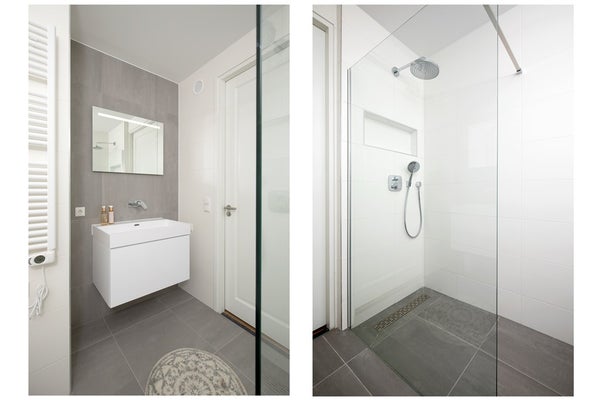 De luxe en-suite badkamer is voorzien van een extra brede inloopdouche, wastafel, ligbad, wastafel en inbouwkast. Daarnaast is er veel bergruimte in een aparte berging met een wasmachine en wasdroger.