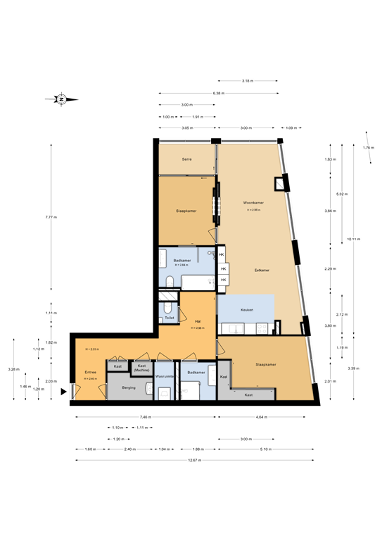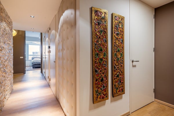 Representatieve lobby met beveiligingsdesk met 24/7 veilige ingang, building manager en twee snelle liften. De lift brengt je naar de 18e verdieping naar de privéhal, gangkast, ruime berging en wasruimte inclusief wasmachine en een aparte toiletruimte voor gasten.