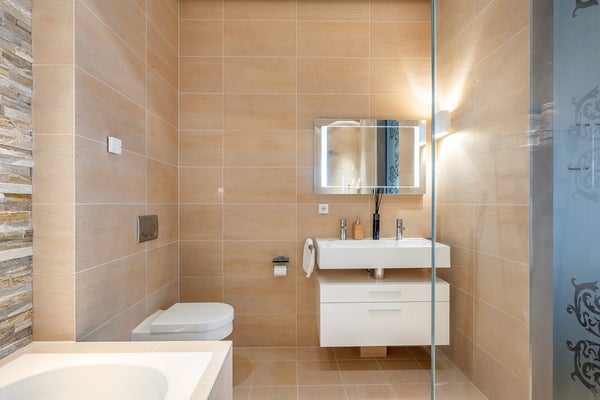 Het appartement heeft twee prachtige badkamers. De en-suite badkamer heeft een inloopdouche, bad, toilet en wastafel. De tweede “gasten” badkamer heeft een inloopdouche en wastafel.