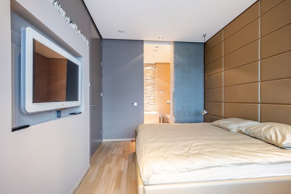 Dit stedelijke appartement nabij het World Trade Center heeft 2 slaapkamers, 2 luxe badkamers, werkkamer (loggia), moderne keuken, zwembad, sportschool, sauna, privéparkeerplaats in de ondergrondse garage en 24 uur beveiliging. Het is beslist een bezoek waard.