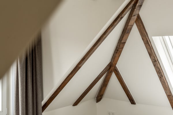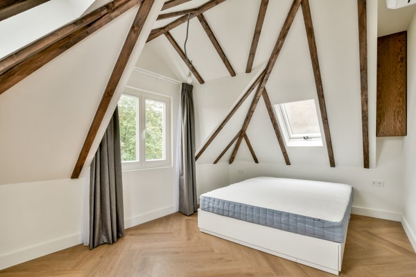 De slaapkamer ligt aan de rustige achterzijde en beschikt over op maat gemaakte inbouwkasten die zorgen voor volop bergruimte en een strak, opgeruimd geheel.