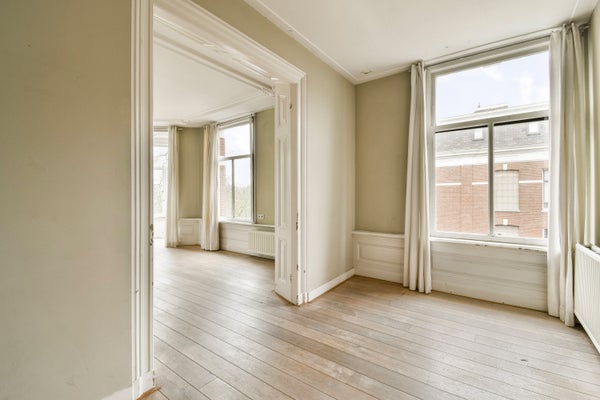 Bij binnenkomst op de derde etage valt direct het indrukwekkende licht en het open karakter van de leefruimte op. De woonkamer is aan de voorzijde gesitueerd en beschikt over grote raampartijen aan zowel de voor- als zijkant, waardoor er een prachtig uitzicht is over het Sarphatipark en er de hele dag door veel daglicht binnenvalt.