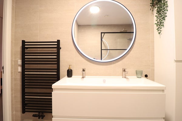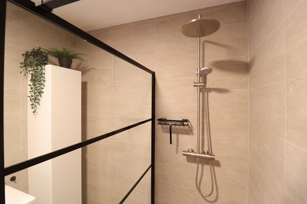 - Badkamer met douche en wastafel