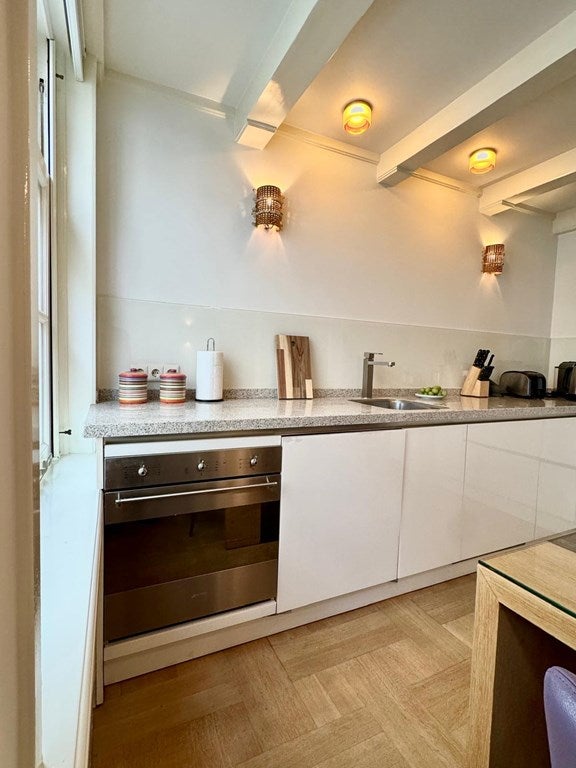 Gelegen in het hart van Amsterdam, biedt dit appartement rust en privacy, terwijl het dicht bij dagelijkse winkelvoorzieningen, modieuze boetieks, restaurants van hoge kwaliteit, gezellige bars en trendy terrassen ligt.