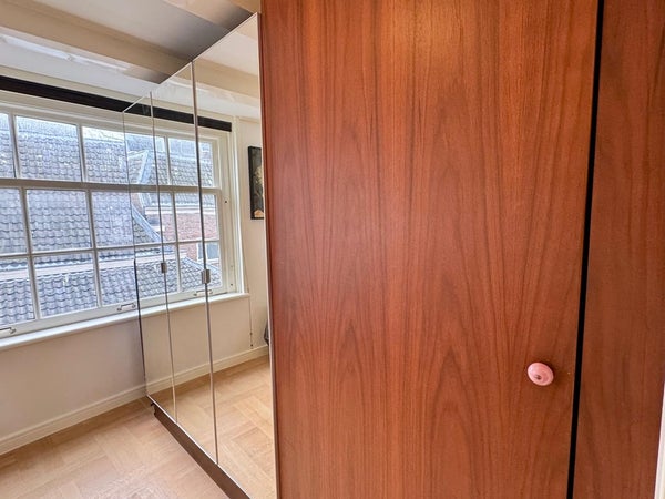 De master bedroom bevindt zich aan de rustige achterkant en bevat een tweepersoonsbed. De één meter brede kast in de hal en de meer dan twee meter brede kast in de slaapkamer bieden volop ruimte om uw bezittingen op te bergen.