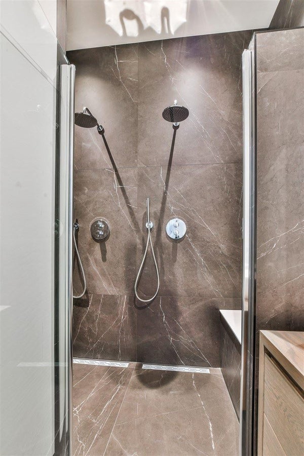 The apartment features a spacious master bedroom with built-in wardrobes and a second, smaller bedroom. The stylish bathroom includes a double rain shower and double sink, complemented by a separate toilet. A private balcony at the rear provides a joyful retreat.