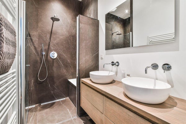 Het appartement beschikt over een ruime master bedroom met ingemaakte kasten en een tweede, compactere slaapkamer. De stijlvolle badkamer is voorzien van een dubbele regendouche en dubbele wastafel; daarnaast is er een apart toilet. Een balkon aan de achterzijde biedt een leuke plek om te ontspannen en genieten van de avondzon.