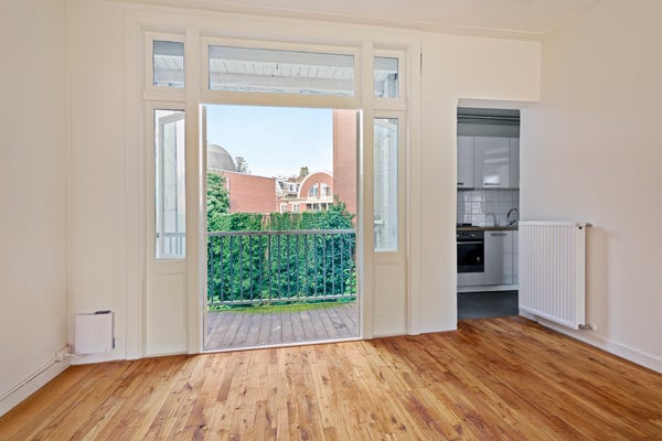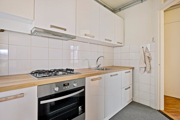 Via de gezamenlijke entree heeft u toegang tot het appartement op de tweede verdieping. U betreedt het via een hal die toegang biedt tot alle kamers. De ruime woonkamer heeft een fantastisch uitzicht over het kanaal. De talrijke ramen zorgen voor veel natuurlijk daglicht in de ruimte. Aan de achterkant vindt u een balkon en daarnaast de keuken, die is uitgerust met alle benodigde apparaten.