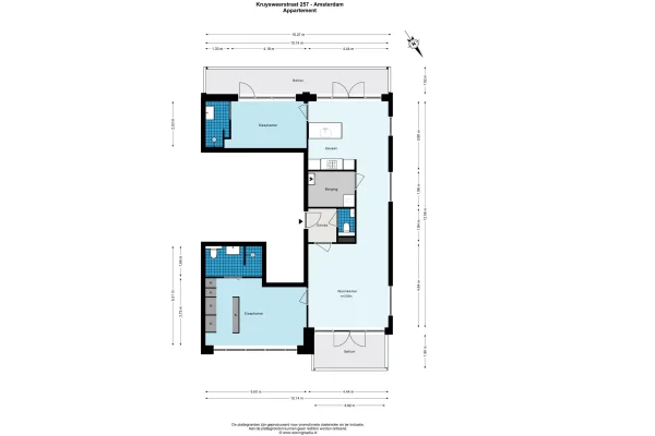 Stijlvol, comfortabel en energiezuinig wonen is mogelijk aan de Kruysweerstraat 257. Dit luxe en volledig ingerichte 3-kamer appartement biedt een warm thuiskomstgevoel, met een doordachte indeling en veel lichtinval. Twee balkons zorgen voor zonneschijn gedurende de dag, en beide slaapkamers zijn uitgerust met een eigen badkamer. Met energielabel A+++ is de woning tevens duurzaam. De indeling omvat een gemeenschappelijke entree, video-intercom, en de toegang naar de lift. Op de vierde etage vindt u de hal met garderobe en een separaat toilet. De lichte woonkamer heeft grote ramen en openslaande deuren naar het eerste balkon. De masterbedroom heeft een maatwerk walk-in closet en luxe en-suite badkamer. De open keuken met kookeiland is van hoogwaardige inbouwapparatuur voorzien. De tweede slaapkamer biedt ook een en-suite badkamer. Optioneel kan een privéparkeerplaats gehuurd worden in de afgesloten parkeerkelder.
