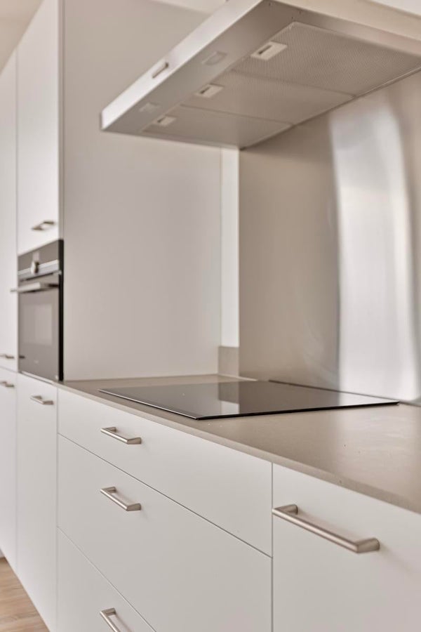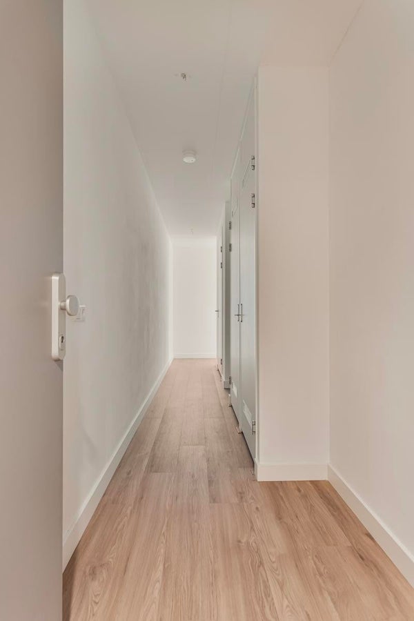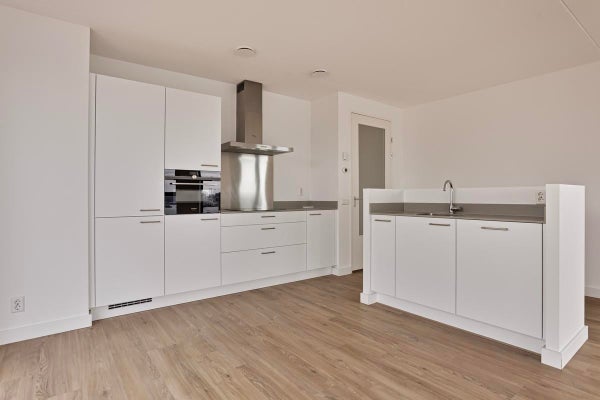 Ruim hoek appartement met grote raampartijen en een balkon op het westen. U komt binnen in de hal met toiletruimte, garderobe, wasruimte en toegang tot alle vertrekken. De woonkamer heeft een speelse vorm en is voorzien van vele ramen, waardoor er veel natuurlijk licht is. Voorzien van een moderne open keuken die is uitgerust met alle benodigde inbouwapparatuur en een spoeleiland. Tevens zijn er openslaande deuren naar het balkon. Aan het balkon grenzen twee slaapkamers. De hoofdslaapkamer is gelegen aan de andere zijde en heeft een oppervlakte van ongeveer 16 m2. De badkamer is voorzien van een inloopdouche, dubbele wastafel en een tweede toilet. De woning wordt opgeleverd met een fraaie PVC-vloer.