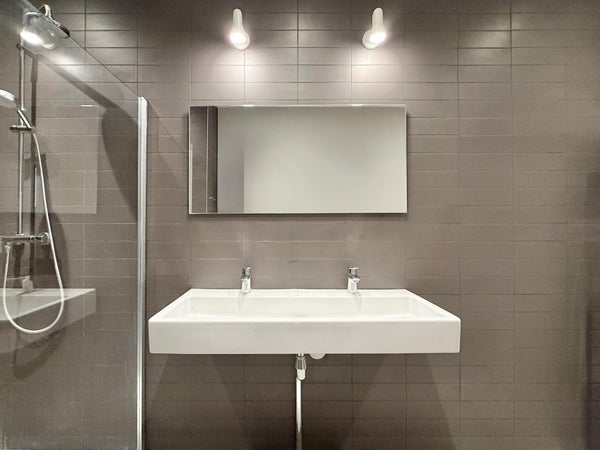 - Dubbele wastafel met spiegel* Badkamermeubilair