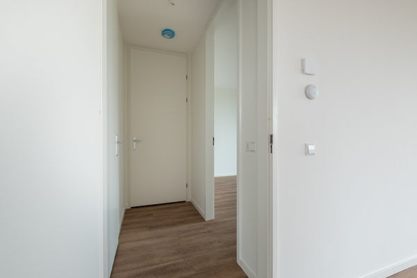 De slaapkamer bevindt zich achterin het appartement en is te bereiken vanuit de tweede hal. In de slaapkamer kun je makkelijk een groot bed kwijt en heb je genoeg ruimte voor kasten. Vanuit de tweede hal is er tevens toegang tot de badkamer, een ideale berging en een opbergkast. Elke woning is voorzien van een eiken look PVC vloer en de wanden zijn afgewerkt.
