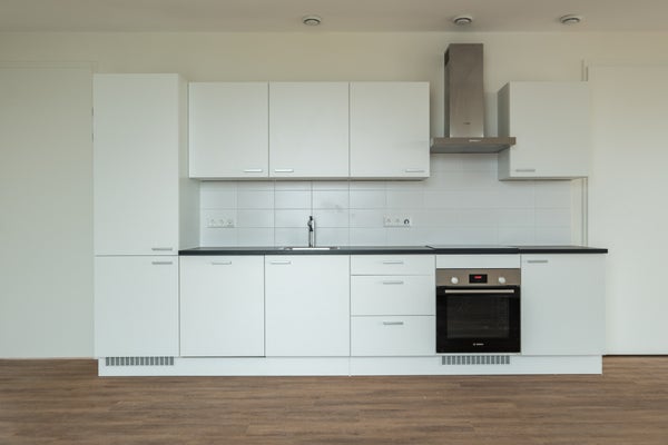 Stap binnen in je eigen Amsterdamse appartement van circa 76 m² en kom binnen in de welkomsthal. Vanuit de hal is er een doorloop naar de open keuken. De fraai afgewerkte Bruynzeel keuken is van alle inbouwapparatuur voorzien. Hier kan je straks uitgebreid koken. In de keuken vind je een inbouw Bosch koelkast, vaatwasser, oven, inductiekookplaat en afzuigkap. In de ruime woonkamer kun je met gemak een luxe zitgedeelte maken en een fijne eethoek. Heerlijk buiten zijn doe je op je eigen loggia. Hier zit je elk seizoen comfortabel door de overkapping.