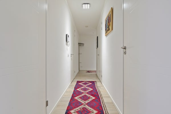 Zodra je binnenstapt, word je verwelkomd door een gevoel van ruimte en licht. De grote raampartijen die de gehele lengte van het appartement sieren, laten het natuurlijke daglicht binnenstromen. De open indeling van de woning zorgt voor een naadloze verbinding tussen de verschillende leefruimtes, waardoor het geheel een sfeervolle en uitnodigende uitstraling krijgt.