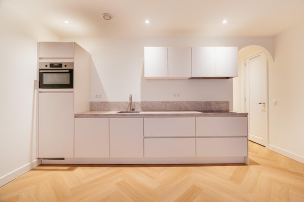 Het appartement is volledig gerenoveerd en van alle gemakken voorzien. De entree is op de eerste verdieping van het gebouw. Via de hal komt u middels de trap in een lichte en ruime woonkamer en open keuken. Gelegen aan de voorzijde van het appartement. Door de grote ramen komt er voldoende daglicht in het appartement. De woonkamer en open keuken bieden een mogelijkheid om zowel een zithoek als eethoek te creëren. De keuken is voorzien van alle nodige moderne inbouw apparatuur.