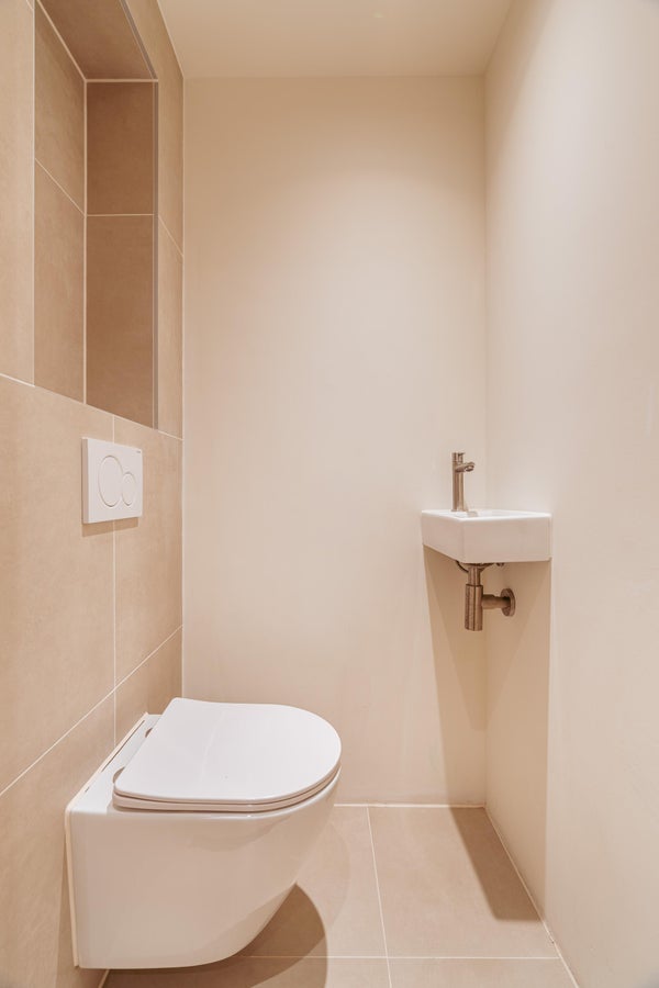 In de hal vindt u de deur die toegang geeft tot de badkamer. Deze is luxueus ingericht met een ruime inloopdouche, wastafel met voldoende opbergruimte, ligbad en een grote spiegel. Daarnaast vindt u in de hal een deur naar een apart toilet en bergruimte voor uw wasmachine. Aan de achterzijde van de woning bevinden zich beide slaapkamers met grote ramen voor voldoende lichtinval. Beide kamers hebben toegang tot een ruim balkon.