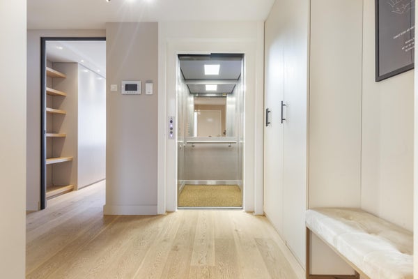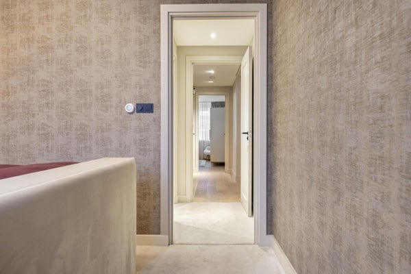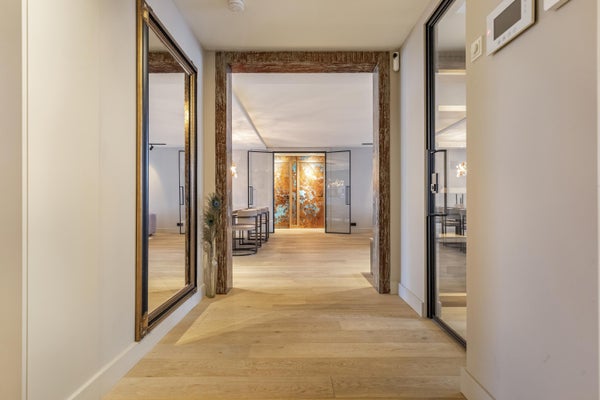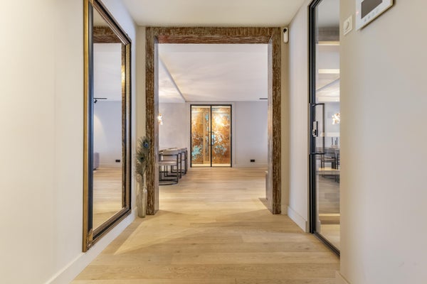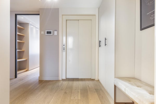 Via de gemeenschappelijke entree brengt de lift je rechtstreeks naar het appartement, waar je direct de woning binnenstapt. De centrale hal geeft toegang tot alle vertrekken en benadrukt de prettige en logische indeling.