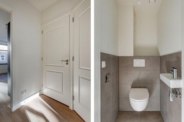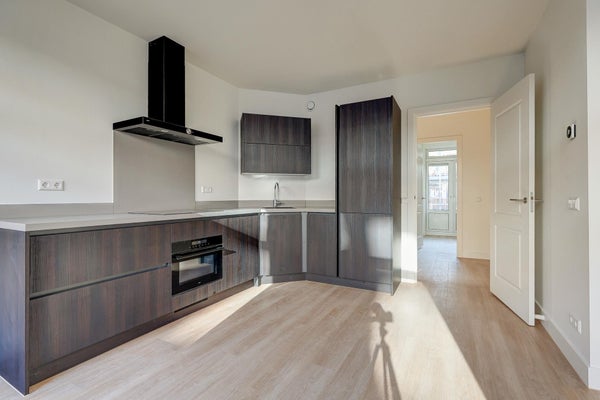 Je komt binnen via de hal die toegang tot alle andere ruimtes. De open keuken is net geplaatst en is voorzien van een vaatwasser, inductie kookplaat, afzuigkap, combimagnetron en koel-vries combinatie. Aan de achterzijde zijn twee slaapkamers welke ook toegang hebben tot het balkon, welke gelegen is op het zuiden.Er is ruimte om een wasmachine te plaatsen. De badkamer is voorzien van een dubbele wastafel, ligbad, douche en handdoekradiator. Het toilet is apart.